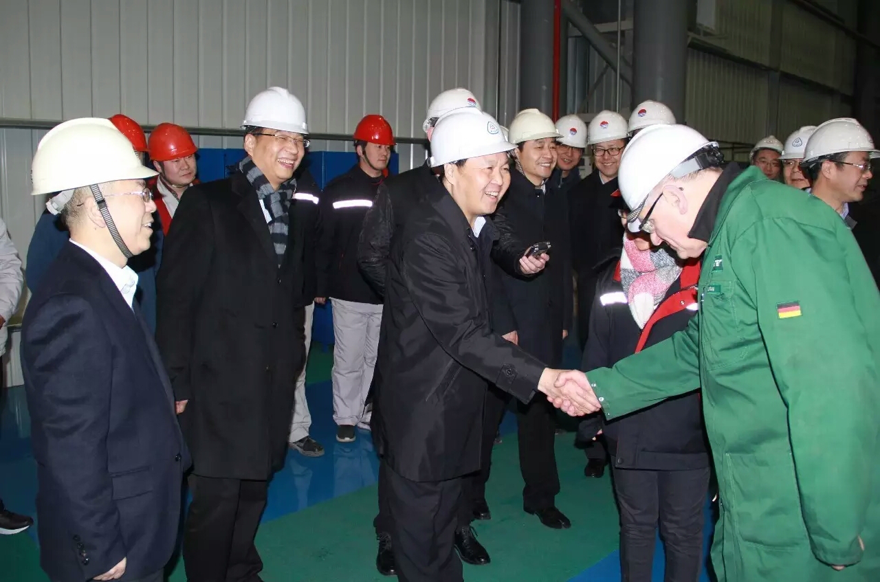 在擴建高精鋁,集團公司領(lǐng)導(dǎo)班子共同參觀了高精鋁生產(chǎn)的全部流程。在進口拉矯工區(qū),賀懷欽董事長還專門與正在加緊進行設(shè)備調(diào)試的外方專家進行了親切交談,并為他送上了新春佳節(jié)的美好祝福。